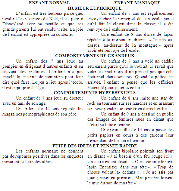 Les premières manifestations observables de la bipolarité ne sont pas nécessairement celles que l'on rencontre chez les patients adultes.