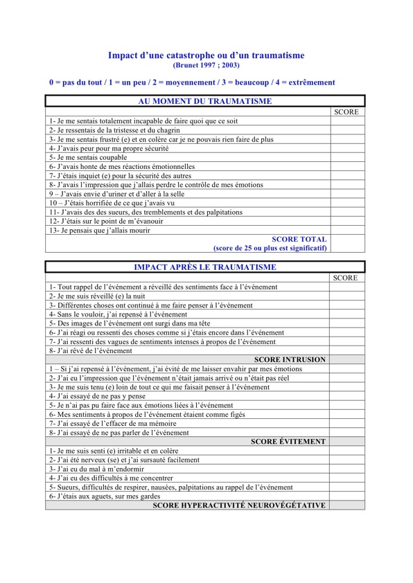 Impact d'une catastrophe ou d'un traumatisme