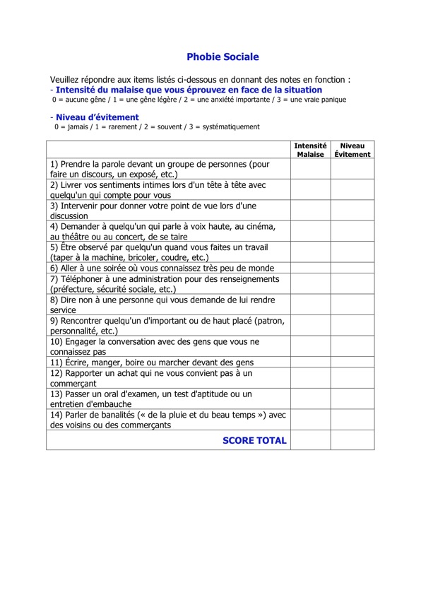 Evaluation de la phobie sociale