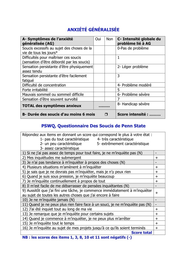 Questionnaire de l'anxiété généralisée