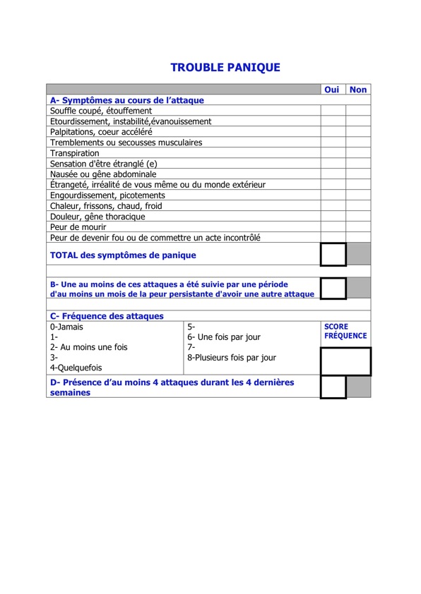 Le test du trouble panique